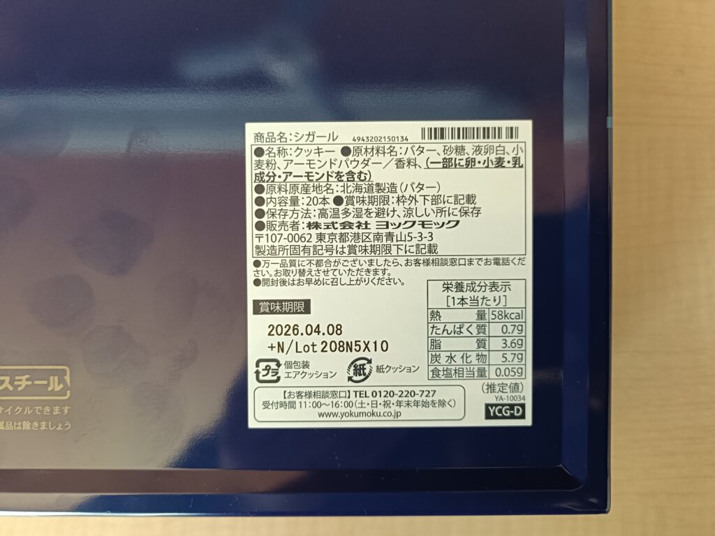 6番ヨックモックの「シガール」