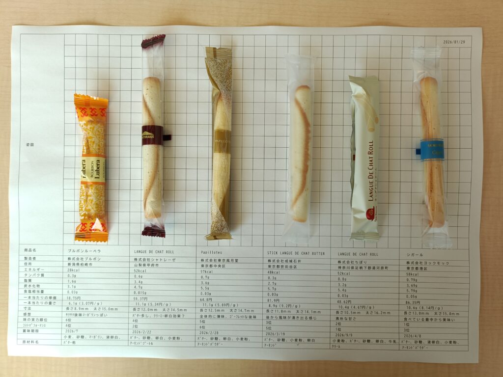 と、いうことで前から叶えたかったラングドシャロール食べ比べをしてみた。